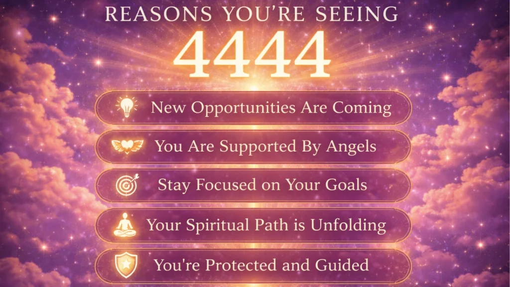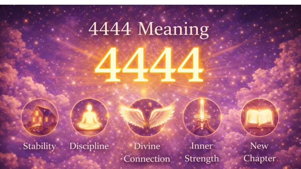 The angel number 4444 symbolizes a stable foundation & guardian. The 4444 angel number also represents protection, discipline, and the creation of strong foundational packages. It reassures you that the long-term goals you’re working toward are protected and supported.