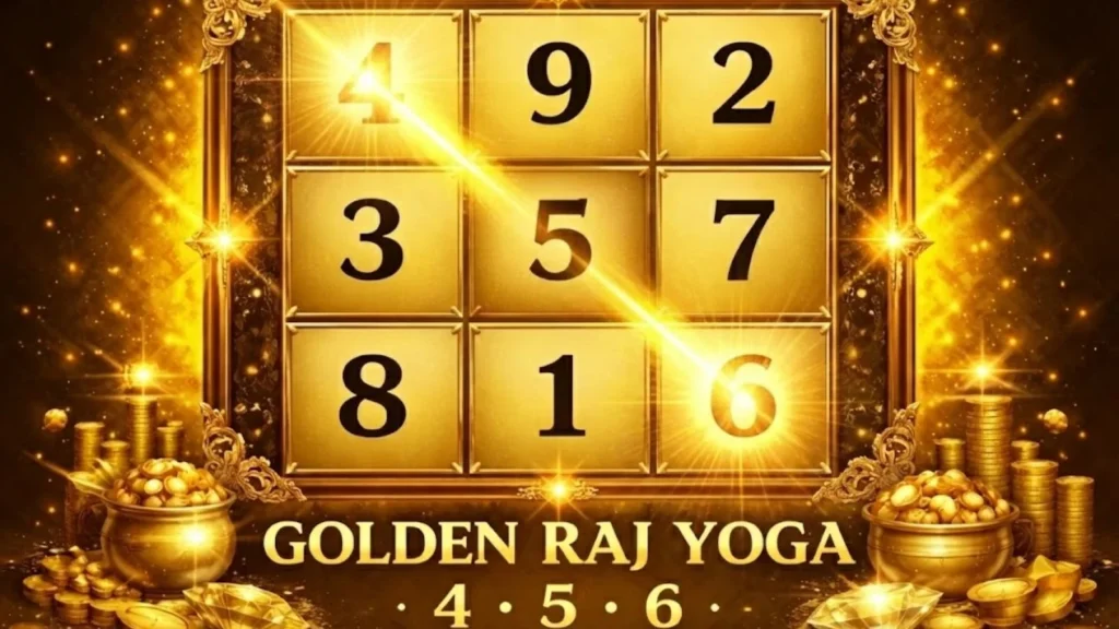 Golden Raj Yoga is formed when the numbers 4, 5, and 6 are present together in a person’s Lo Shu Grid.