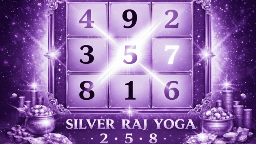 Silver Raj Yoga is formed when 2, 5, and 8 are present together in the Lo Shu Grid.