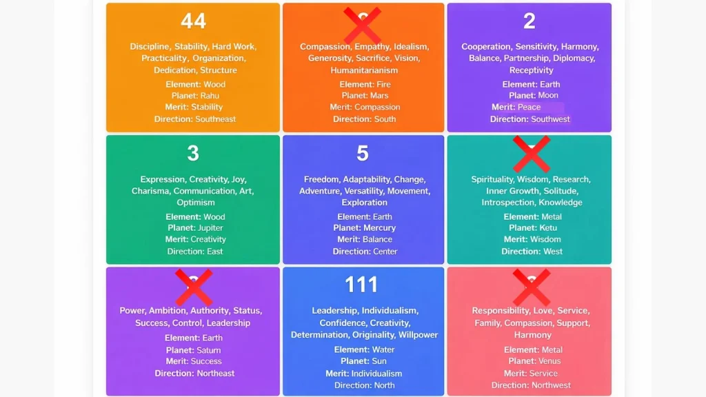 Remedies are suggested based on your specific grid structure—helping activate missing Raj Yoga numbers through disciplined practices, timing awareness, and mindful habits. - Vastu-Based Energy Alignment